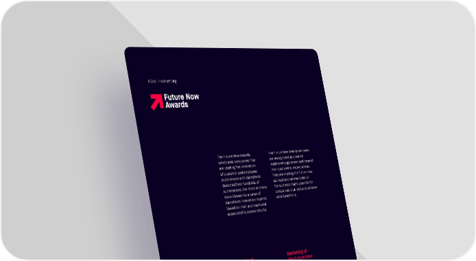 Also Featuring The Future Now Awards The Future Now Awards winners celebrates companies that are recognized as creative are leading the innovation leaders who go above and beyond of customer and employee their customers’ expectations. experiences with Salesforce. They are leading the future now Selected from hundreds of as inspirational examples of submissions, the three winners the success that’s possible for were chosen by a panel of companies of all sizes to achieve Salesforce innovation experts with Salesforce. based on their approach and associated business results. Sales of Service of Marketing of The Future Now The Future Now The Future Now Your sales goals go beyond hitting Your customer service is You’ve discovered the right quotas. You take the time to personalized and consistent channels to reach your understand prospects as people, across all channels–in a word, customers with the content and continuously work to improve customer-obsessed–making they want, and you’ve got the employees’ day-to-day workflows. more than just an impression, measurable KPIs to prove it. you’ve earned customers for life. Winner Winner Winner Verimatrix Nextep Warner Music Group B2B | 301–500 Employees B2B | 150–200 Employees B2C | 3,500–5,000 Employees U.S. U.S. 50+ Countries 2 The State of Salesforce