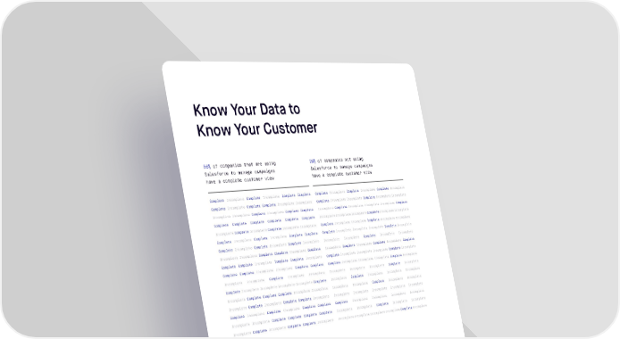 Know Your Data to Know Your Customer 56% of companies that are using 26% of companies not using Salesforce to manage campaigns Salesforce to manage campaigns have a complete customer view have a complete customer view Complete Incomplete Complete Incomplete Complete Complete Complete Incomplete Complete Incomplete Complete Incomplete Complete Incomplete Complete Complete Incomplete Incomplete Complete Incomplete Incomplete Complete Incomplete Incomplete Incomplete Incomplete Complete Incomplete Complete Complete Incomplete Complete Incomplete Incomplete Incomplete Complete Complete Complete Complete Complete Complete Complete Incomplete Incomplete Incomplete Complete Incomplete Incomplete Incomplete Complete Incomplete Complete Incomplete Incomplete Complete Incomplete Incomplete Complete Incomplete Incomplete Complete Incomplete Complete Incomplete Complete Complete Complete Incomplete Incomplete Incomplete Complete Incomplete Complete Incomplete Complete Incomplete Complete Incomplete Incomplete Incomplete Complete Incomplete Incomplete Incomplete Incomplete Complete Complete Incomplete Complete Incomplete Complete Incomplete Complete Incomplete Complete Complete Complete Incomplete Complete Complete Incomplete Complete Incomplete Incomplete Incomplete Complete Incomplete Complete Complete Incomplete Incomplete Complete Complete Complete Incomplete Incomplete Incomplete Complete Incomplete Incomplete Incomplete Complete Incomplete Incomplete Incomplete Incomplete Incomplete Complete Incomplete Complete Incomplete Incomplete Incomplete Incomplete Complete Incomplete Complete Incomplete Incomplete Incomplete Incomplete Complete Complete Complete Incomplete Incomplete Incomplete Incomplete Complete Incomplete Incomplete Incomplete Complete Incomplete Complete Complete Incomplete Incomplete Incomplete Incomplete Incomplete Incomplete Complete Incomplete Complete Incomplete Complete Complete Complete Incomplete Incomplete Incomplete Incomplete Incomplete Incomplete Complete Complete Complete Complete Incomplete Incomplete Complete Incomplete Incomplete Incomplete Complete Incomplete Complete Complete Incomplete Incomplete Incomplete Incomplete Incomplete Complete Incomplete Clean data is the key to systems comes nonreportable, Companies that use personalized customer nonactionable data siloed Salesforce to manage their engagement. Every customer between platforms. When campaign performance are touch point is a data point, and marketers have access to insights over 2x more likely to yet data inconsistencies pose the across the customer lifecycle, have a complete view of biggest challenge to Marketing they’re empowered to optimize organizations striving to measure campaigns and prove ROI. The their customer. their influence and prove ROI. With best marketing organizations so many ways to engage with a are beginning to bring Data brand, it’s become increasingly Management Platforms (DMP) difficult for marketers to in-house to separate signal understand who they are without a from noise, unify data within marketing strategy that prioritizes and outside of Salesforce, and data governance and Salesforce serve up relevant content at the integration. In fact, just 29% of right time to personalize the Marketers have a complete view customer experience. of their customers. Why? 48% say disparate systems are to blame—and with disparate 36 Marketing The State of Salesforce