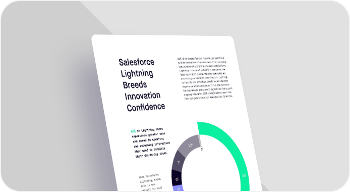 92% of employees believe they can use Salesforce Salesforce to drive innovation in their business if their company has transitioned or plans to transition to Salesforce Lightning Lightning—compared with 76% in companies that have not or don’t plan to. The best companies are prioritizing the transition from Classic to Lightning, Breeds not only for the immediate benefit to the employee experience with an enhanced UI, but also to enable the business as a whole with capabilities that support Innovation ongoing innovation. 68% of respondents report that Confidence their company’s transition took less than 12 months. 67% of Lightning users experience greater ease and speed in updating and accessing information they need to complete % 12 their day-to-day tasks. % 1 % 7 With Salesforce Lightning, which % task is now 6 easiest for you? % 36 % 3 % 4 % 31 Finding Information Collaborating Accessing Information Sharing Information Managing Relationships Updating Information Creating Content Resolving Exceptions The State of Salesforce Lightning 49