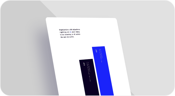 Organizations with Salesforce Lightning are 3x more likely to be investing in AI within the next 12 months. % e I r 69 A d a n in g g ain n t i s n e t v h g in i e L % tI s ’ U n A e 60 r in d ag nin t g as ne iv nin t h g i e L s t u ’ n o D % t I ’ n A 28 e r in d ag n in t g as n e % e I i v r n in A t 22 d a h n in g g i g ain e L n t s i s U n e t v h g in i e L s t u ’ n o D The State of Salesforce Lightning 51