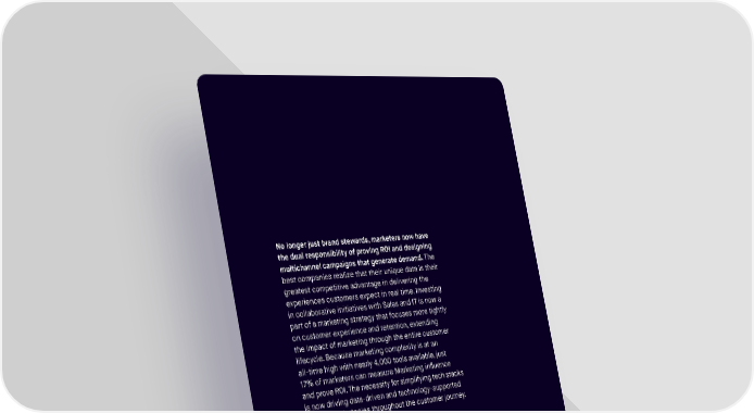 No longer just brand stewards, marketers now have the dual responsibility of proving ROI and designing multichannel campaigns that generate demand. The best companies realize that their unique data is their greatest competitive advantage in delivering the experiences customers expect in real time. Investing in collaborative initiatives with Sales and IT is now a part of a marketing strategy that focuses more tightly on customer experience and retention, extending the impact of marketing through the entire customer lifecycle. Because marketing complexity is at an all-time high with nearly 4,000 tools available, just 17% of marketers can measure Marketing influence and prove ROI. The necessity for simplifying tech stacks is now driving data-driven and technology-supported marketing strategies throughout the customer journey. “There is no excuse for not knowing your customer, and your customers know it. The opportunity to use insights to serve them is bigger than ever and unmissable.” Corinne Sklar Global Chief Marketing Officer Bluewolf, an IBM Company The State of Salesforce Marketing The State of Salesforce Marketing 3535